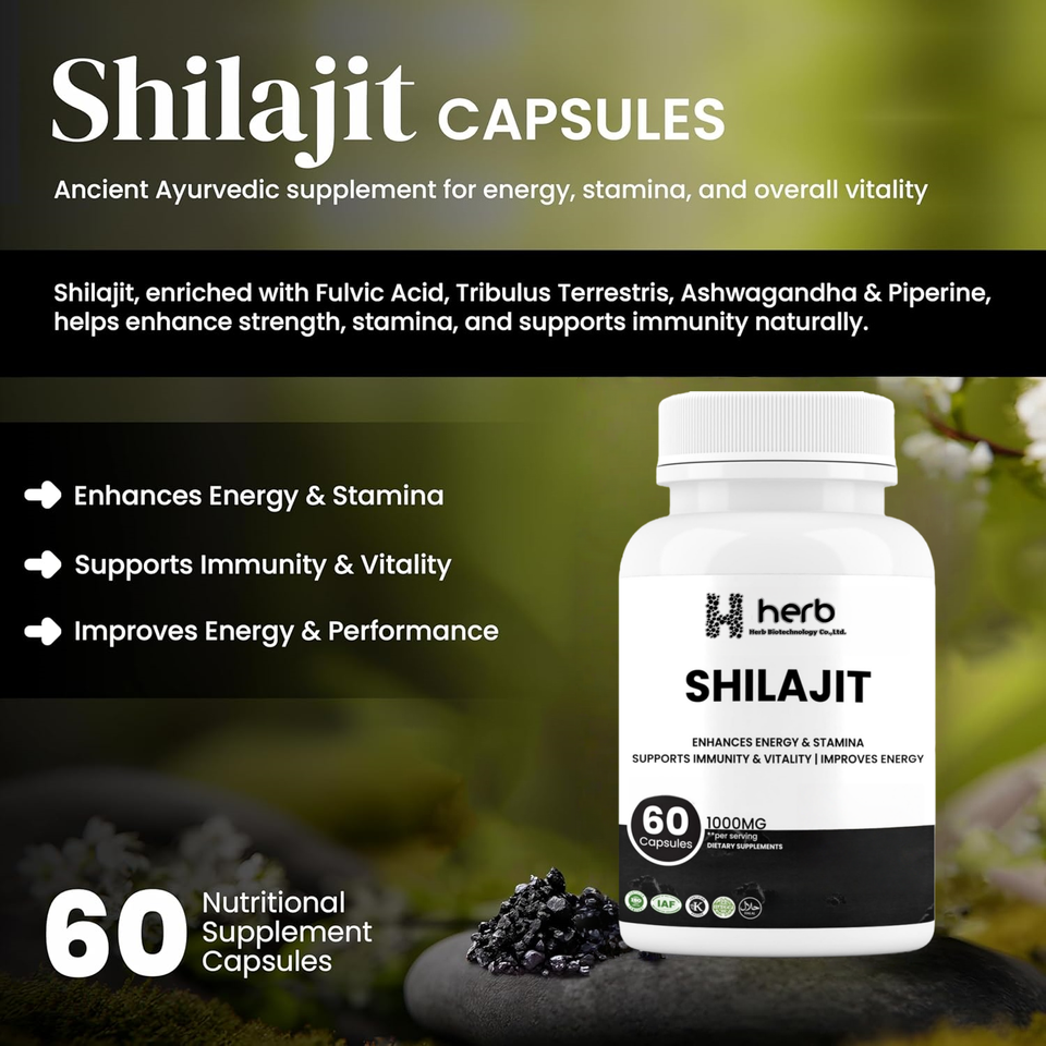 Capsules de Shilajit de qualité supérieure, marque privée OEM, pour adultes - avec Ashwagandha, Ginseng et Acide Fulvique, soutien immunitaire et gestion de l'énergie