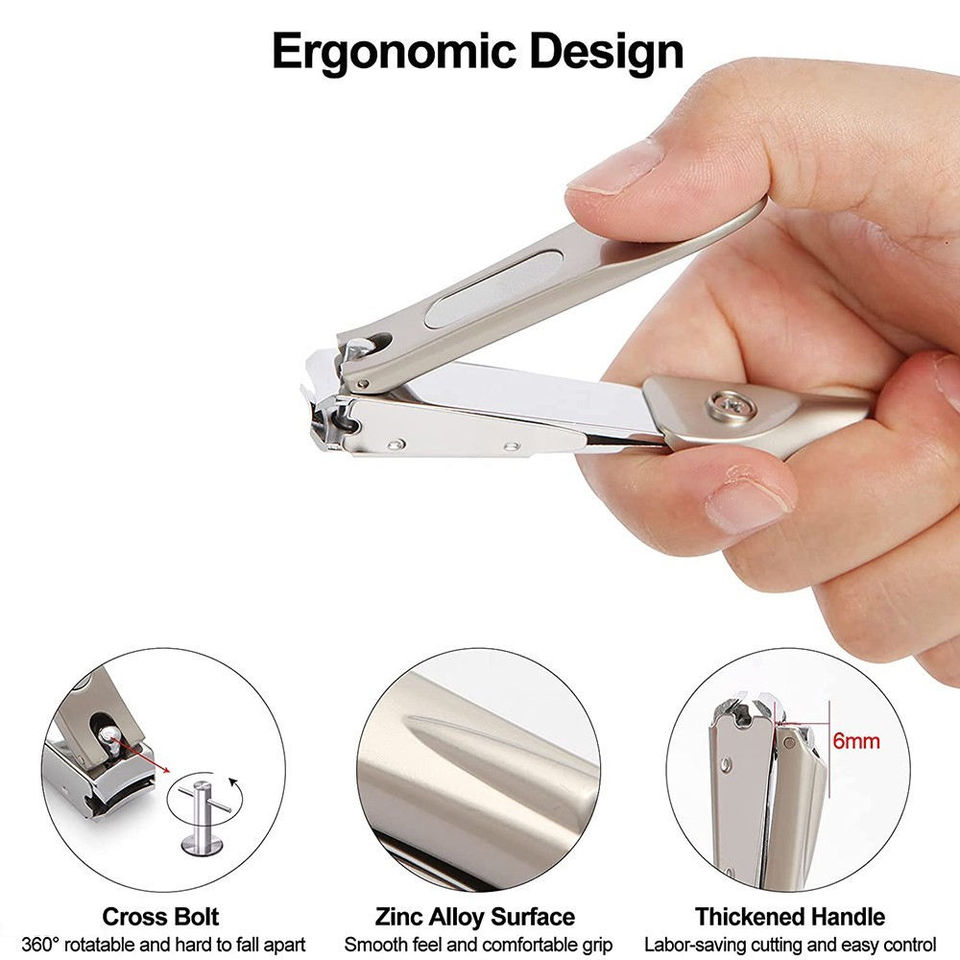 Coupe-ongles Premium OEM Kaamir KI-NC-38 en acier inoxydable, courbé, droit, pointu, à large ouverture de mâchoire, pour ongles épais, durable