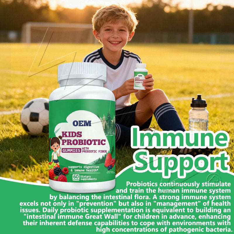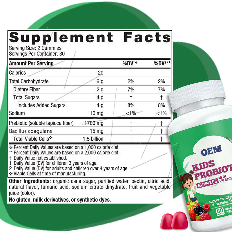 Gummies pour enfants à étiquette propre, huile biologique premium, probiotiques, multivitamines, biotine, soins digestifs et immunitaires, fabrication OEM personnalisée
