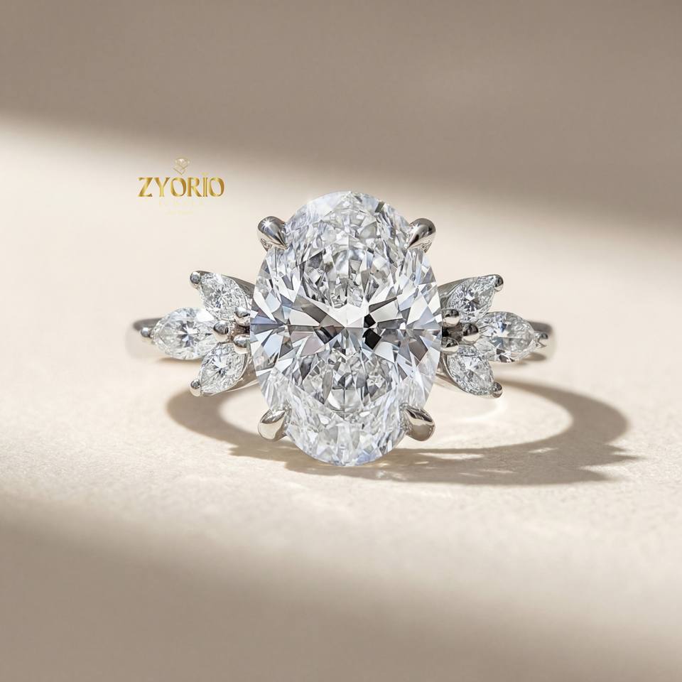 Bague de Mariage Tendance Premium en Diamant de Laboratoire Taille Ovale, Monture Muse en Or Blanc 14K, Bijou de Fiançailles et de Mariage pour Femme, Cadeau Idéal