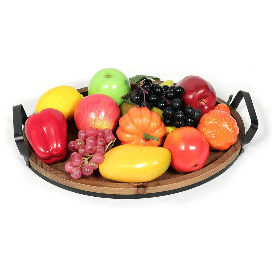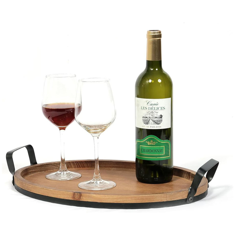 Plateau en bois de manguier ovale de qualité supérieure avec poignées en métal durables Plateau en bois élégant pour table basse poufs affichage de fruits et décoration intérieure