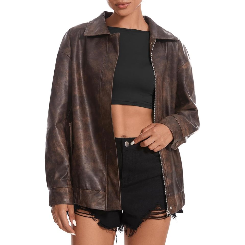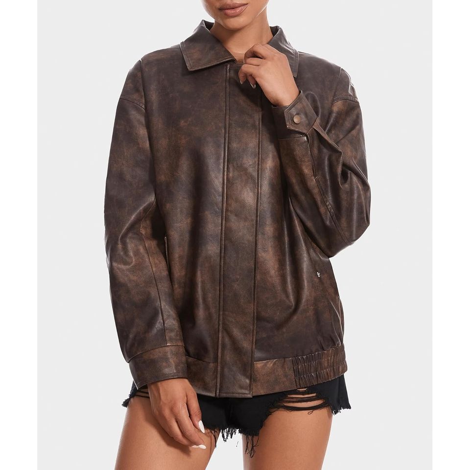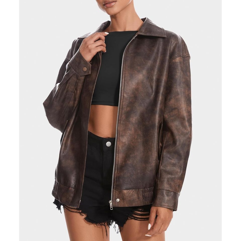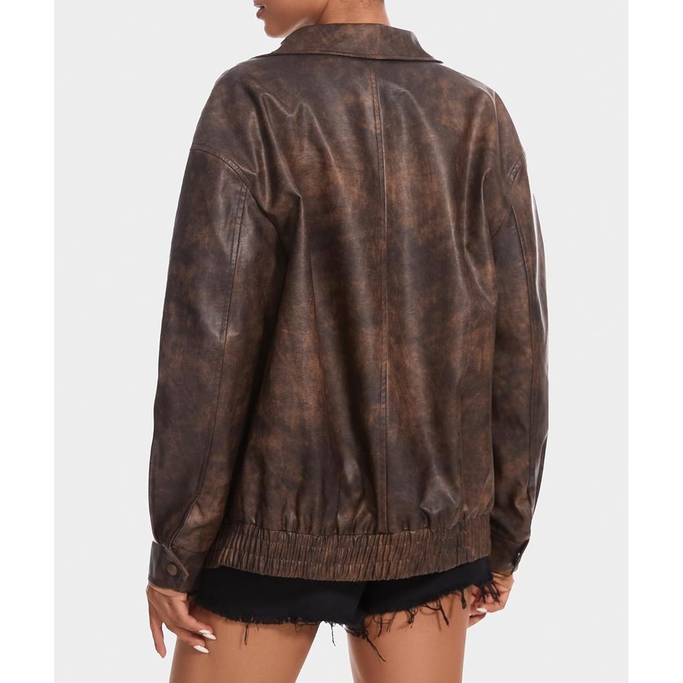 Blouson Racer Premium Oversize avec Logo Appliqué pour Femme, en Cuir de Mouton Pleine Fleur Personnalisé, Doublure en Coton Tricoté, Réversible, Hiver