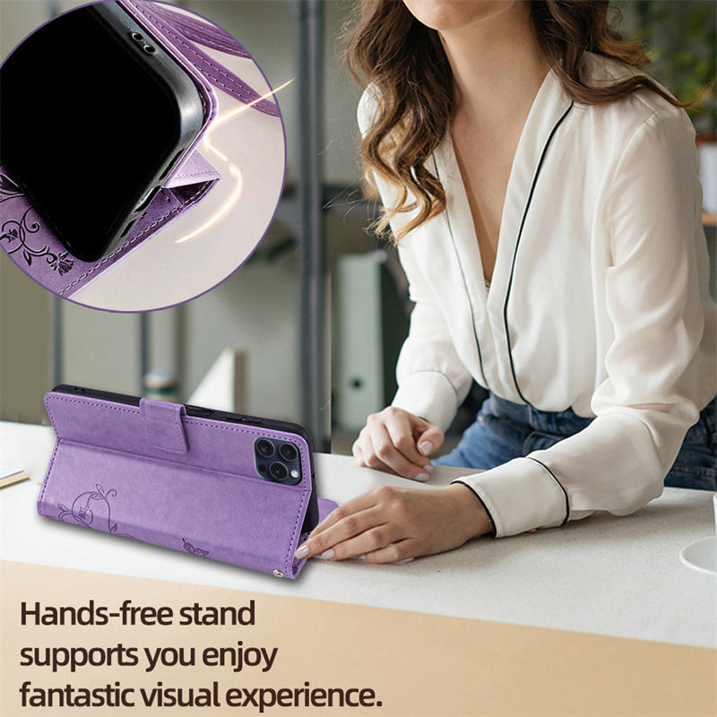 Premium PU Leather Flip Wallet Cover for iPhone 16 with Zipper Card Slots Magnetic Wrist Strap Purse Butterfly Case