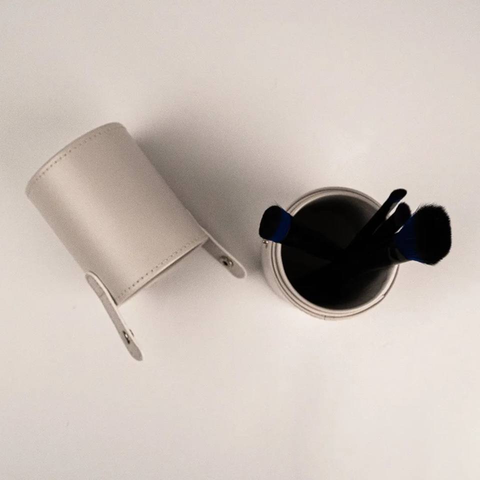 Premium PU Leather Makeup Brush Holder Cylindrical Travel-Friendly Storage Organizer for Beauty Tools