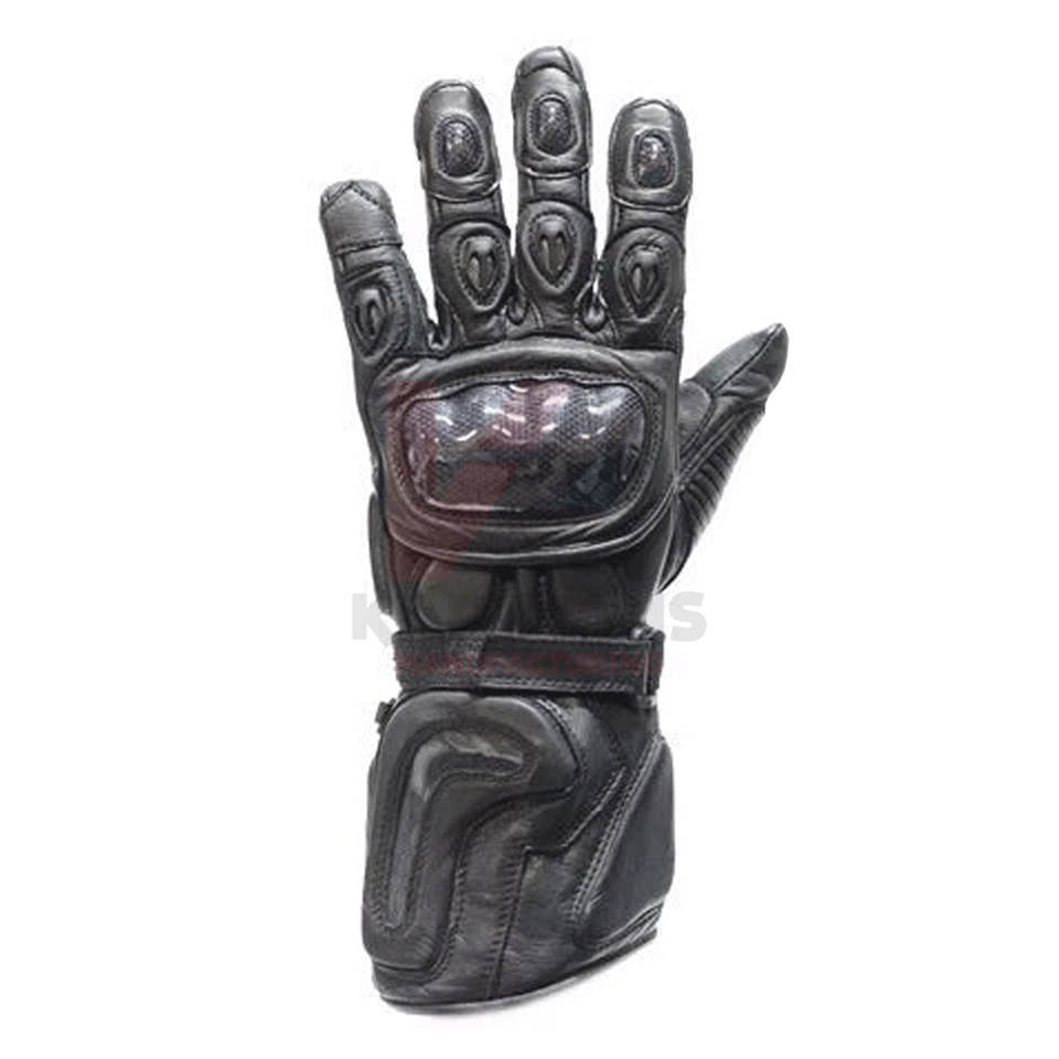 Premium Padded Wrist Genuine Leather Motorbike Gauntlet Gloves Black Full Finger Motorcycle Racing Gloves for Men Durable Auto