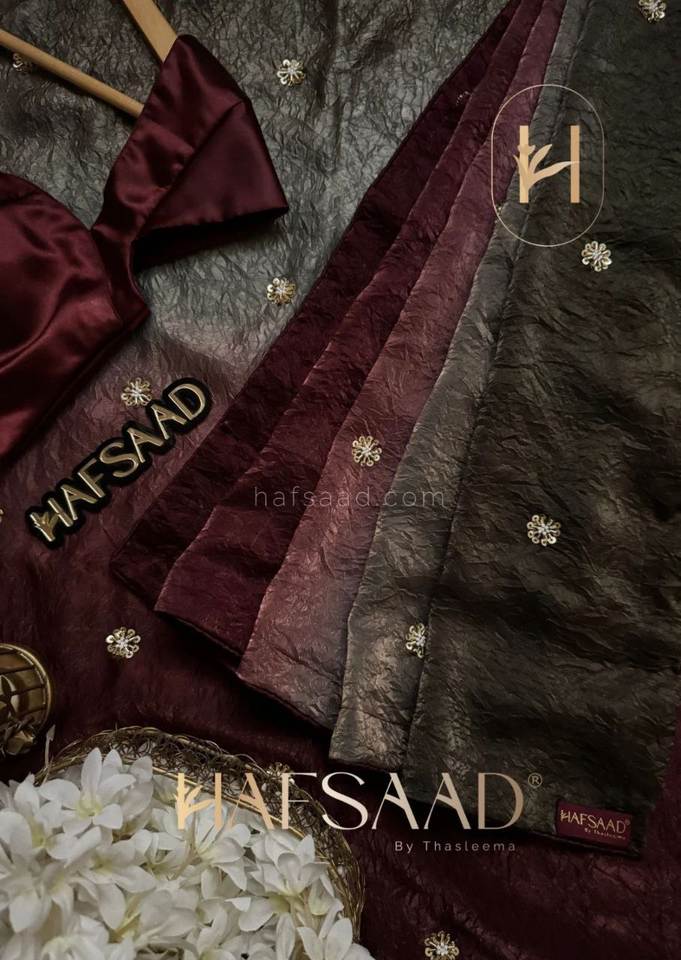 Sari en satin fantaisie de qualité supérieure avec rembourrage, orné de broderies et de sequins, bordure en dentelle et pièce de chemisier en soie Banglori de créateur