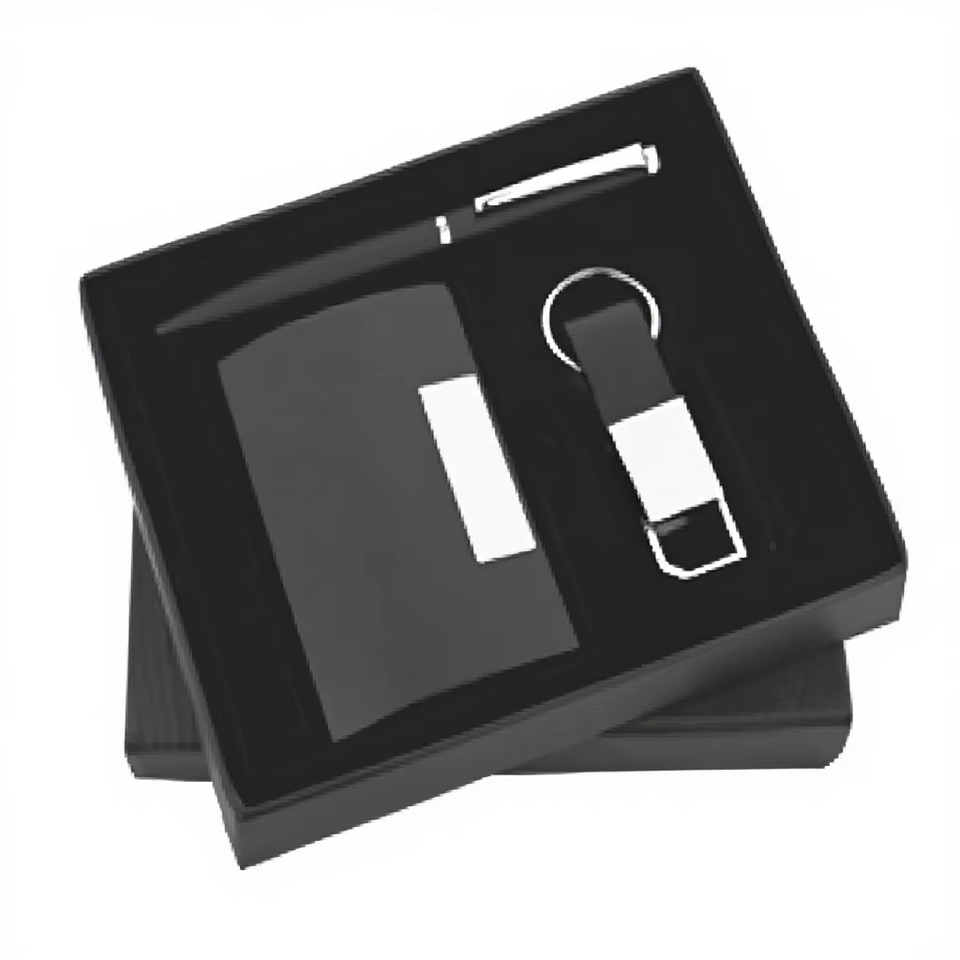 Ensemble Cadeau Premium Stylo, Porte-clés et Porte-cartes S-127 – Combo d'Entreprise Élégant : Stylo Métallique, Porte-clés Stylé et Porte-cartes pour Offrir