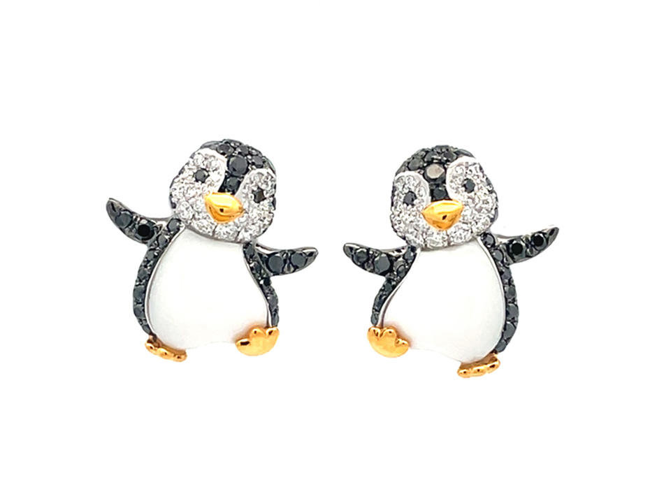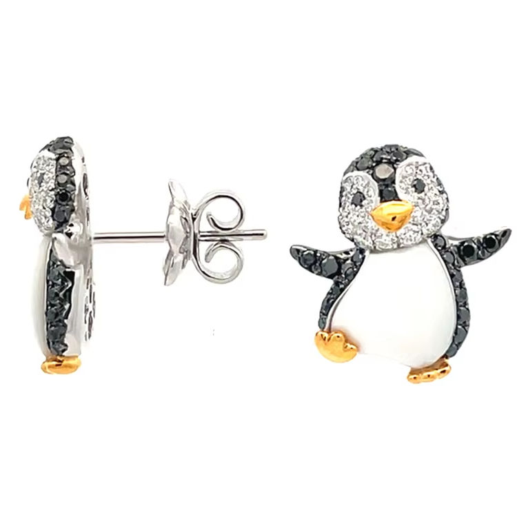 Boucles d'oreilles clous de qualité supérieure, design pingouin, argent sterling 925, plaqué or 18 carats, incrustation noire et blanche, bijoux mignons pour animaux, cadeau pour femmes