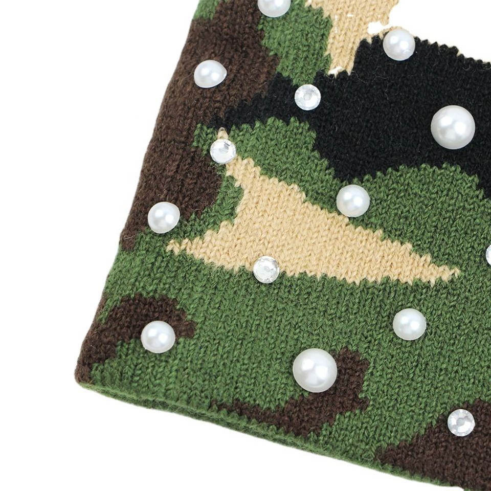 Bonnet en tricot extensible premium à broderie 3D écossaise, mélange de laine, strass scintillants, effet bling accrocheur et chaud