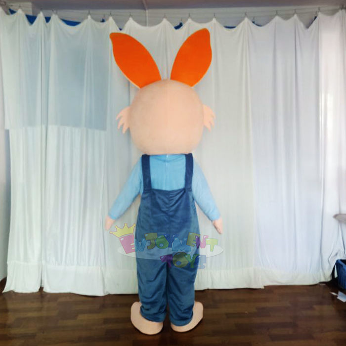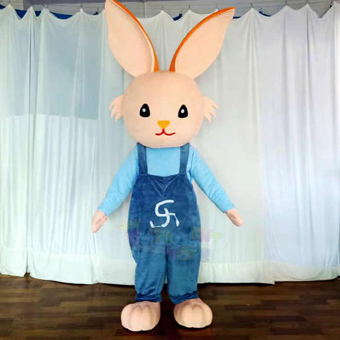 Costume de Mascotte Lapin Adulte en Peluche Premium Unisexe avec Salopette Bleue pour Fêtes et Événements Festifs