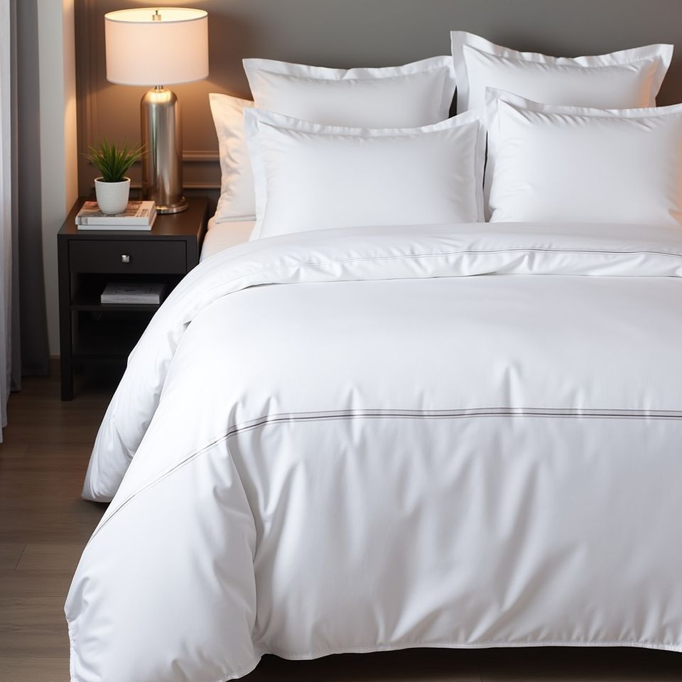 Premium Polycotton 4040s 250T Washable 210cm X 230cm Duvet Cover with Wide Satin Stripes and Tailored French Hem Edging