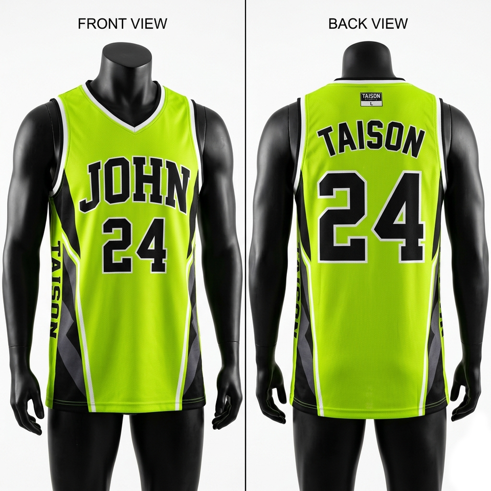 Premium Polyester Mesh Men Basket Ball Jersey Olive Green Orange Breathable Fabric Side Panel Design Custom Heat Transfer Logo