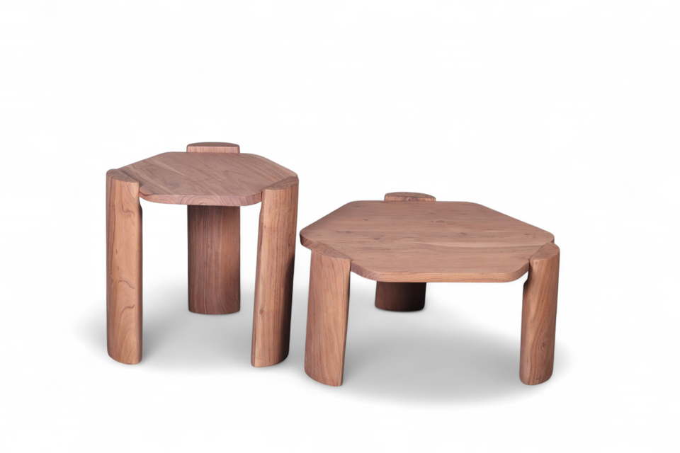 Premium Portable Hexagonal Base Design Wooden Coffee Table Strong Wooden Legs Handmade for Modern Home Decor Living Room