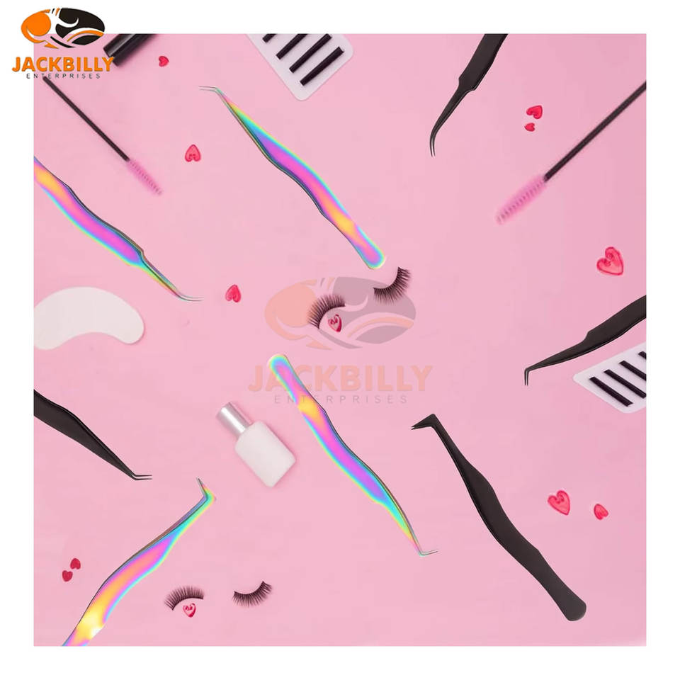 Pince à épiler à volume droit et mince de marque privée de qualité supérieure pince à épiler à extension de cils personnalisée à pointe fibre à fixation forte plaqué or