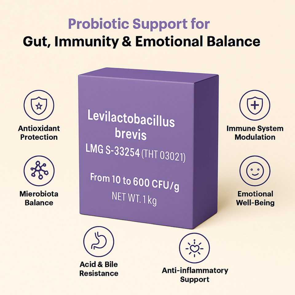 Poudre de probiotiques premium LMG S 33254 Levilactobacillus brevis 10 à 600 CFU g Ingrédient en vrac Lyophilisé Souches certifiées OEM