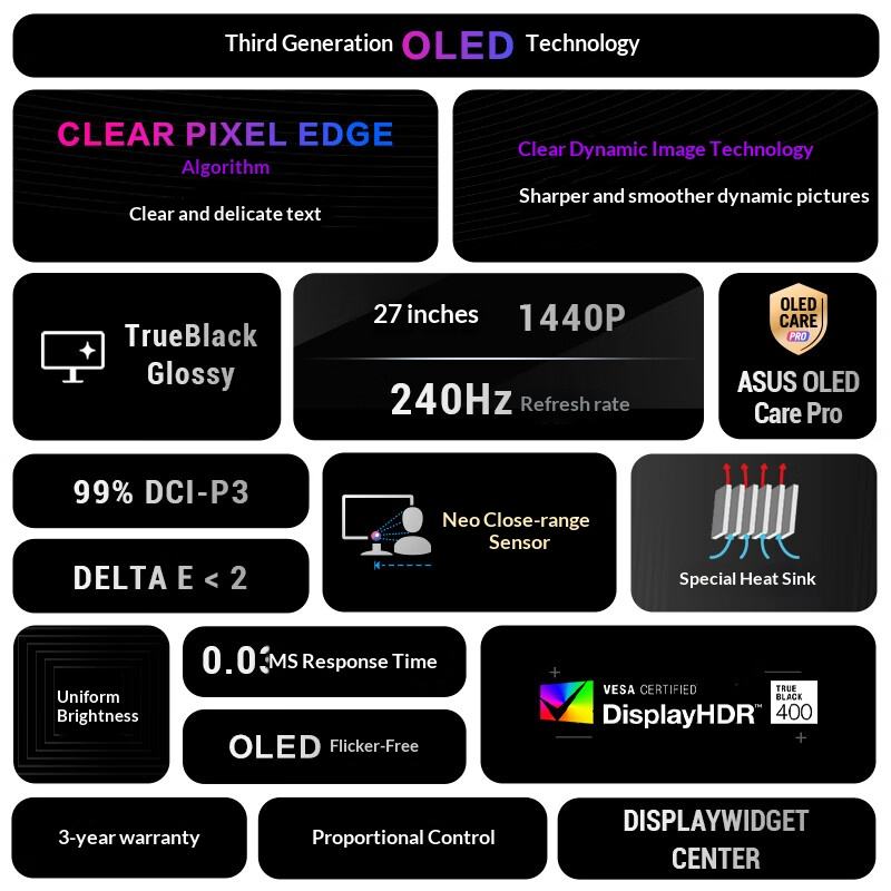 Produit Premium ASUSS ROG XG27AQDMGR Moniteur de Jeu 27 Pouces 2K, Écran OLED 2K 240Hz, Temps de Réponse de 0,03 ms, HDR400