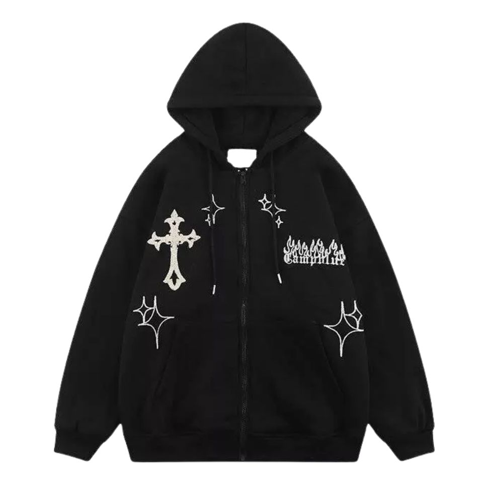 Sweat-shirt à capuche brodé surdimensionné pour homme en style hip hop urbain motif solide doublé pour un usage quotidien en hiver