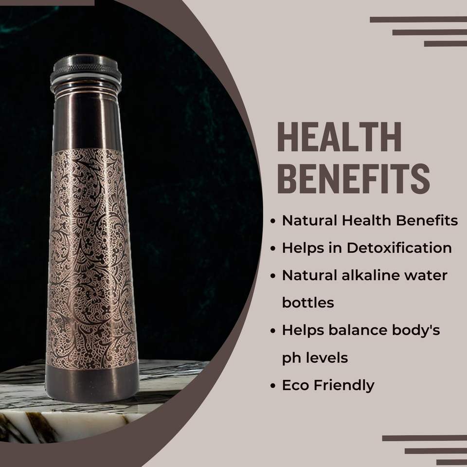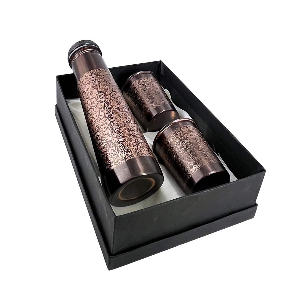 Ensemble de bouteille et de verres en cuivre pur de qualité supérieure, étanche, bouteille en cuivre pur étanche avec 2 verres, bouteille d'eau en cuivre de qualité supérieure