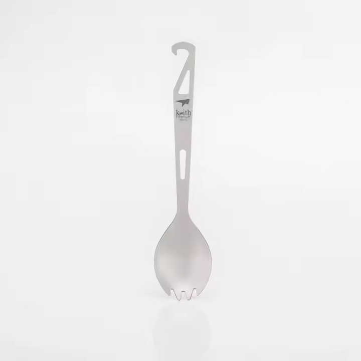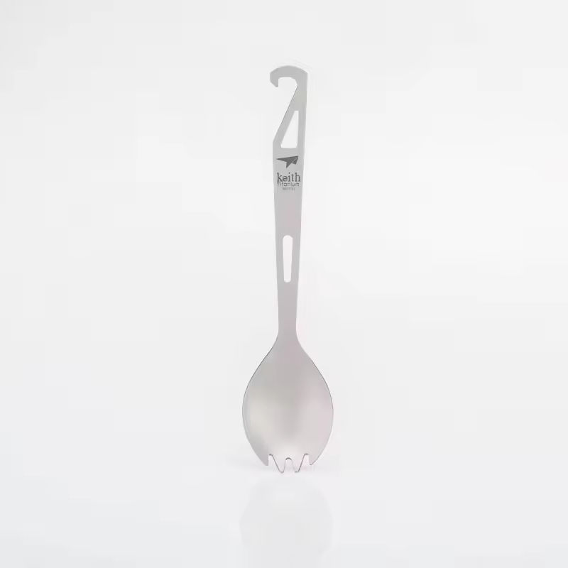 Fourchette-cuillère en titane avec décapsuleur
