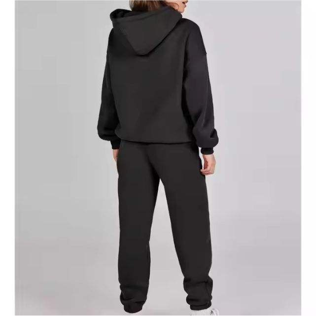 Qualité supérieure 100% coton Style couleur femmes survêtement uni surdimensionné deux pièces survêtement pour dames