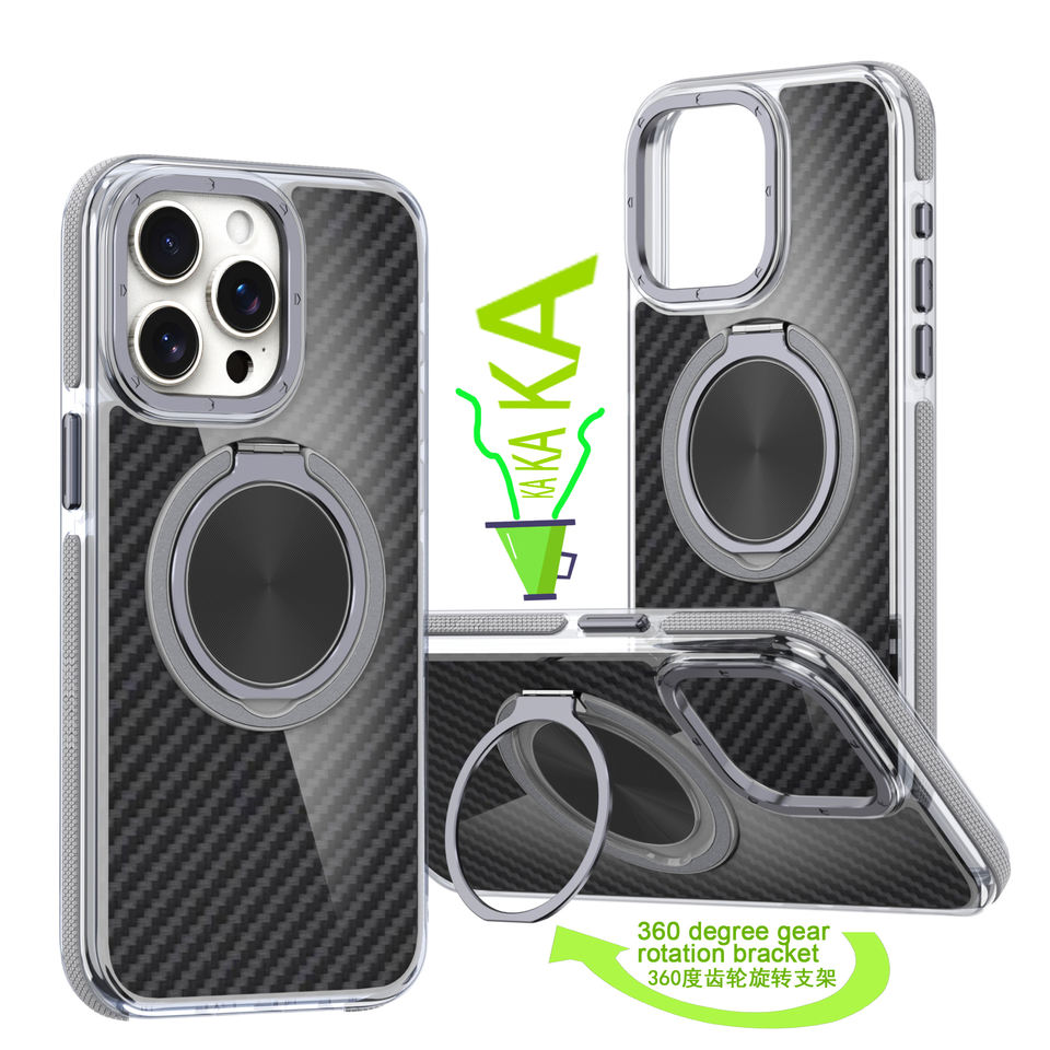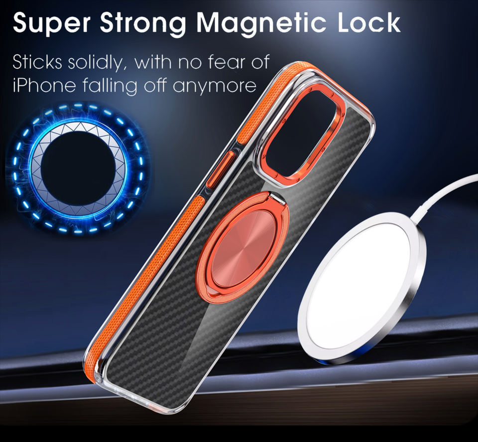 Étui de téléphone magnétique en fibre de carbone antichoc avec béquille rotative de qualité supérieure 360