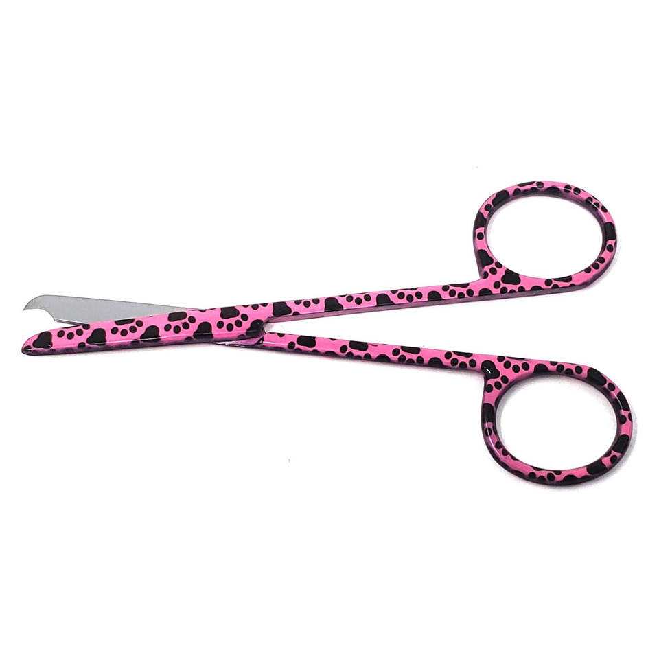 Premium Quality 4.5 Inch Pink Paws Design Surgical Comfort Reusable Stainless Steel Stitch Scissors Hook-Shaped Tip Manual Power
