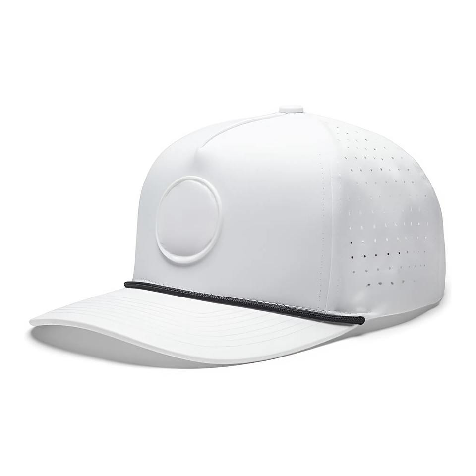 Casquette de golf 5 panneaux de qualité supérieure avec corde et trous découpés au laser Casquettes de baseball en gros Logo en caoutchouc avant réglable Snapback