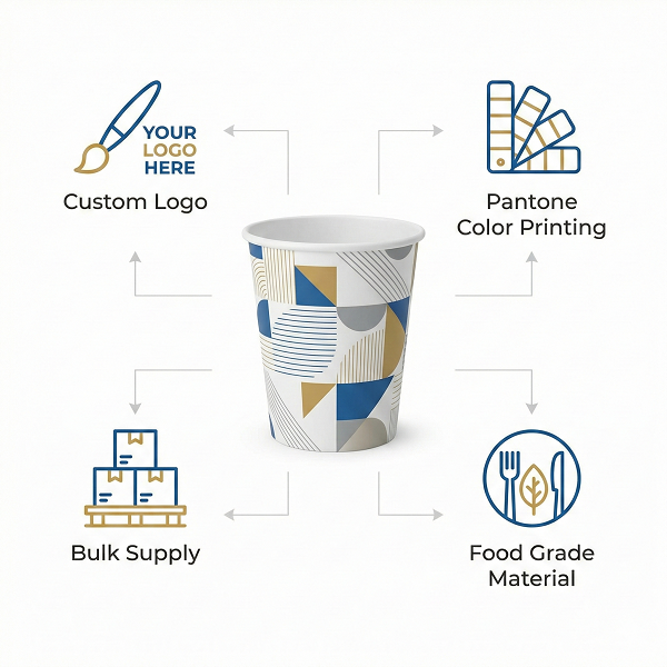 Gobelet en papier à paroi simple de qualité supérieure, 5 oz (150 ml), avec logo personnalisé, léger, jetable, pour boissons chaudes, pour restaurants et hôtels