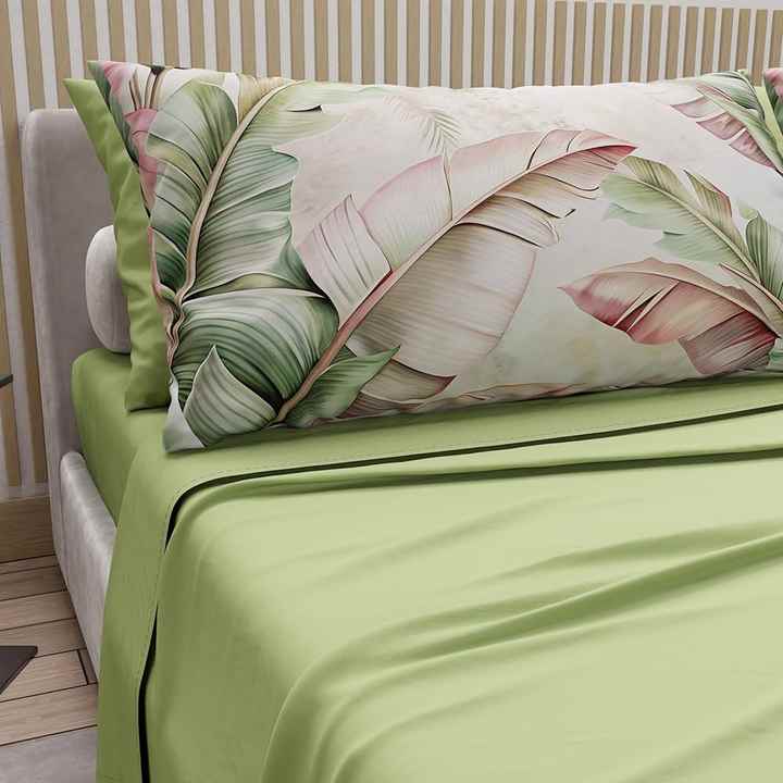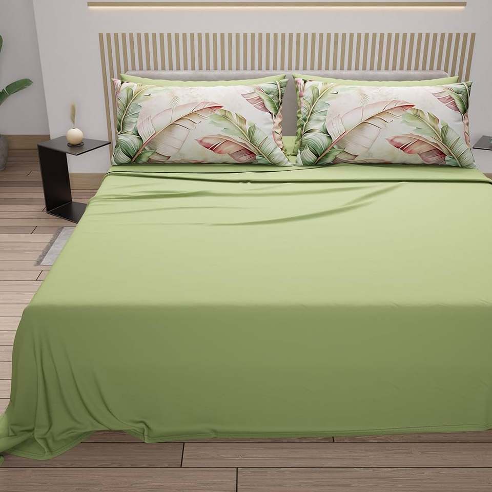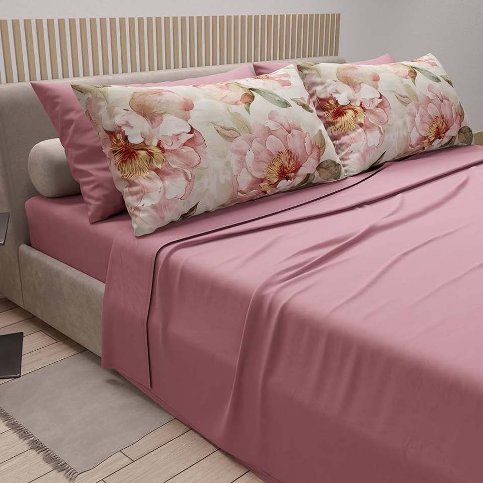 Flat Bed Sheet + Fitted Bed Sheet + 4 Pillowcases
