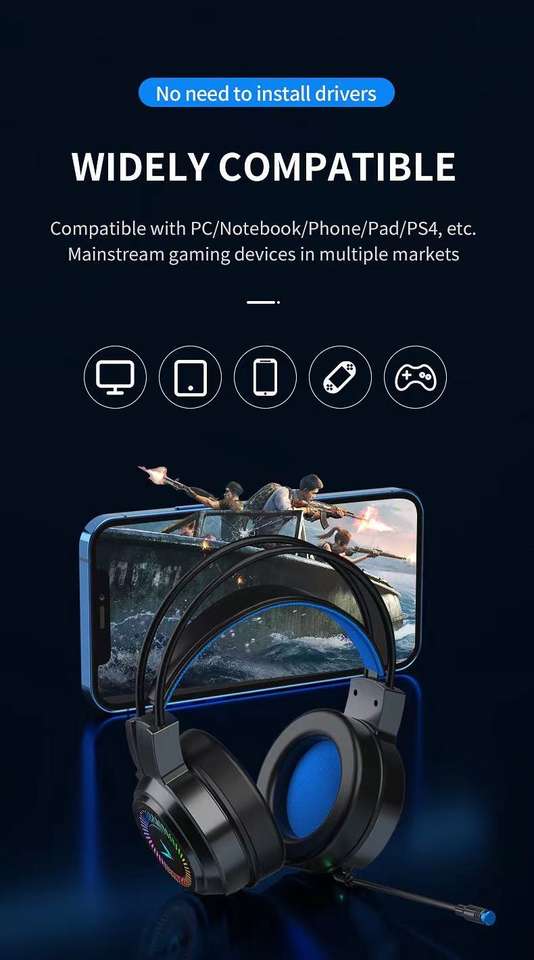 Casque d'écoute filaire USB LED 7.1 Stéréo de qualité supérieure avec micro, son surround virtuel dynamique et basses profondes pour ordinateur, téléphone portable et voyage
