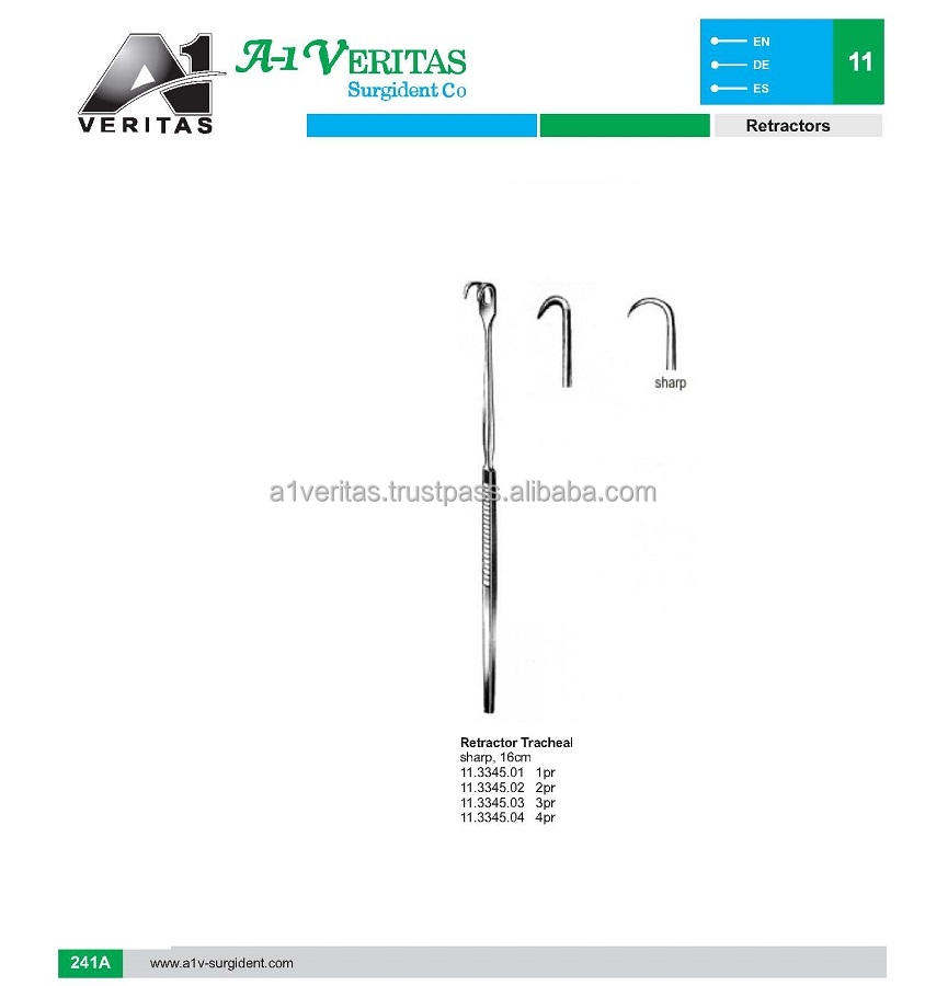 Rétracteur de trachée A-1 VERITAS de qualité supérieure, finition mate, personnalisable OEM, 16 cm, ensemble d'instruments réutilisables