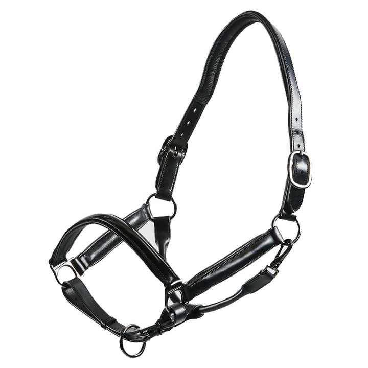 Licol de cheval anatomique de qualité supérieure en cuir verni pleine fleur boucles en acier inoxydable rembourrées souples Horsekraft écologique