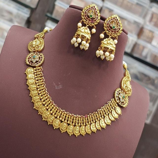 Ensemble de collier plaqué or de conception unique exclusive antique de qualité supérieure avec boucles d'oreilles pour la collection de mariage pour les femmes