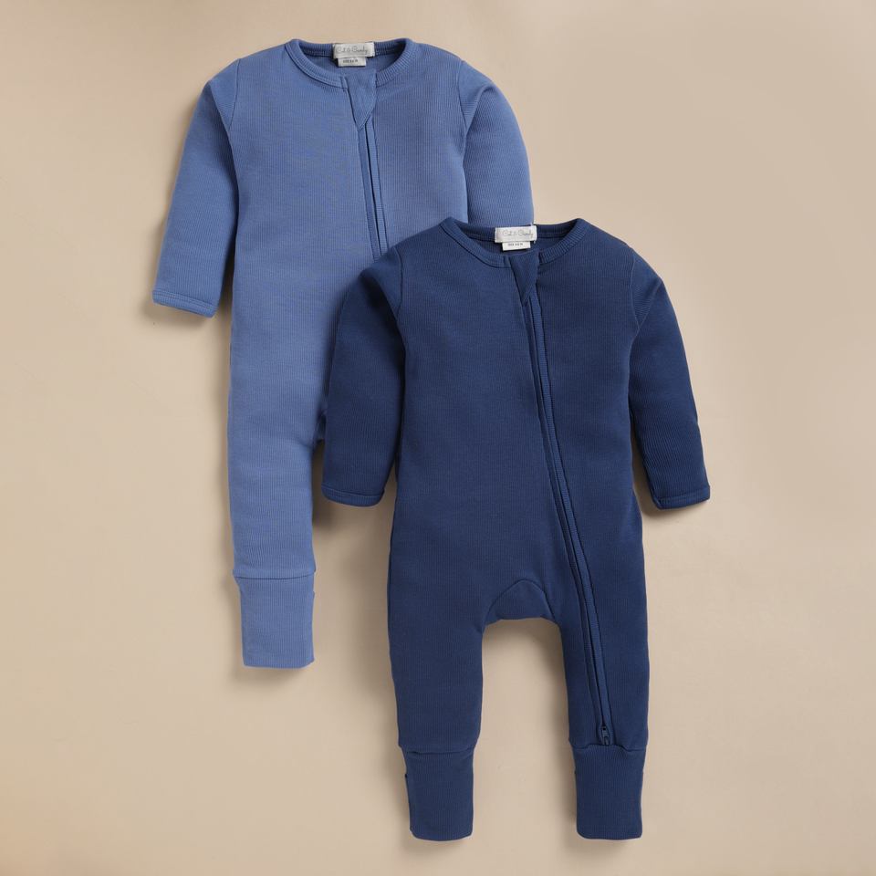 Lot de 2 barboteuses zippées en bambou élasthanne de qualité supérieure-Navy + Light Denim