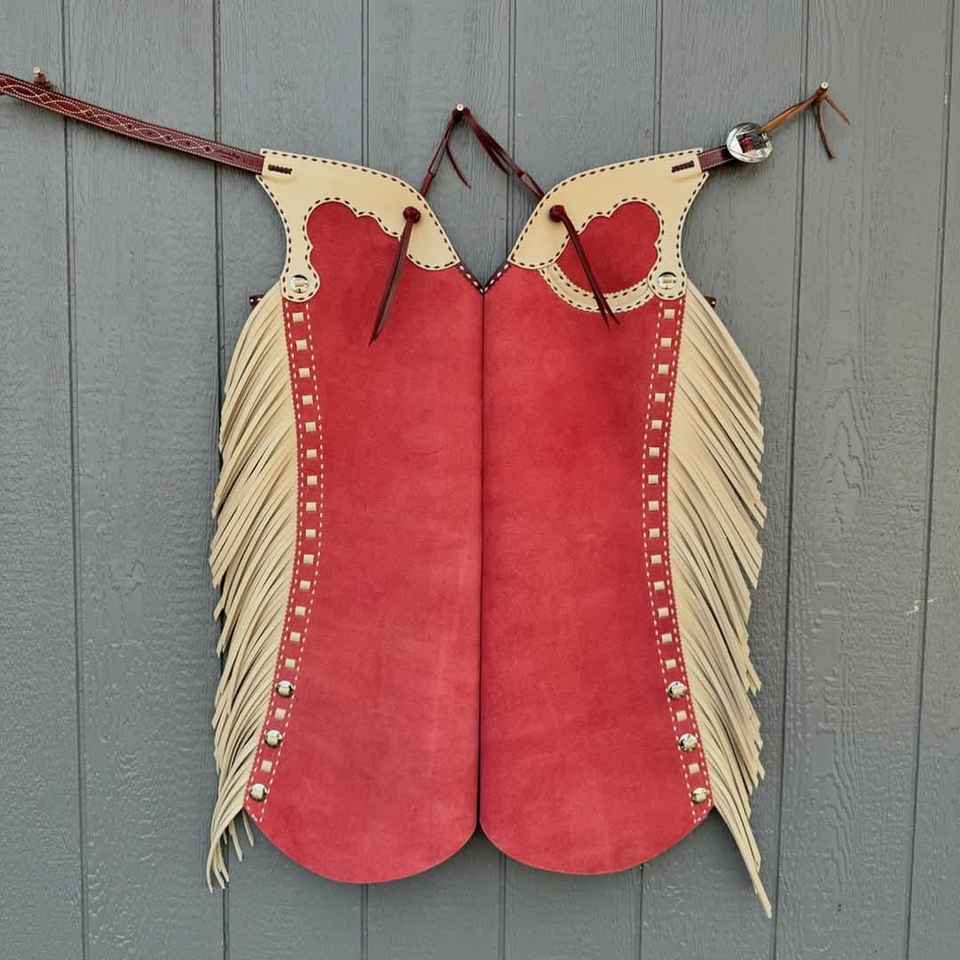 Chaps en cuir véritable de couleur beige et rouge de qualité supérieure usinés à la main couleurs et tailles assorties disponibles fabricants de vente chauds