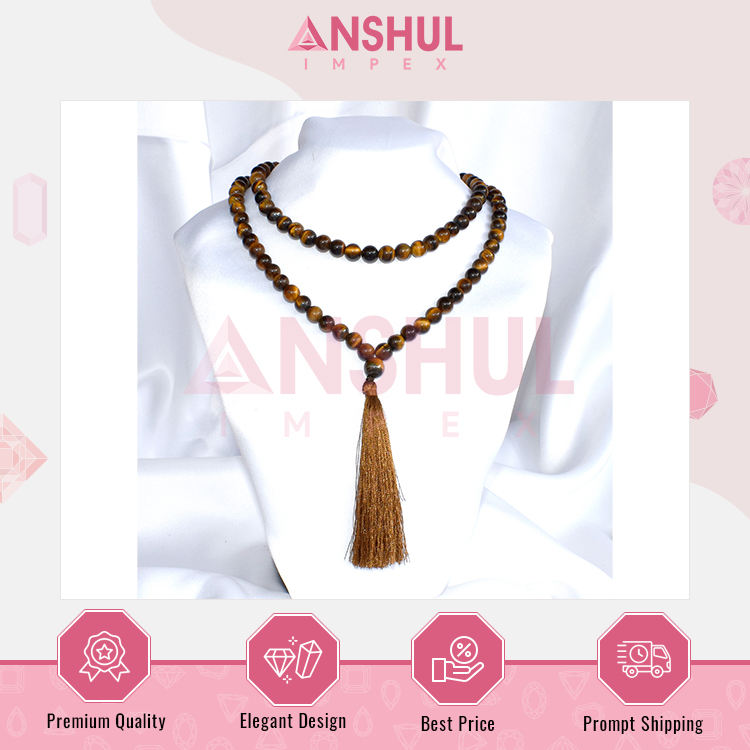 Nom du produit:8mm, oeil de tigre pierres précieuses Mala, 108 perles de prière Jap Mala