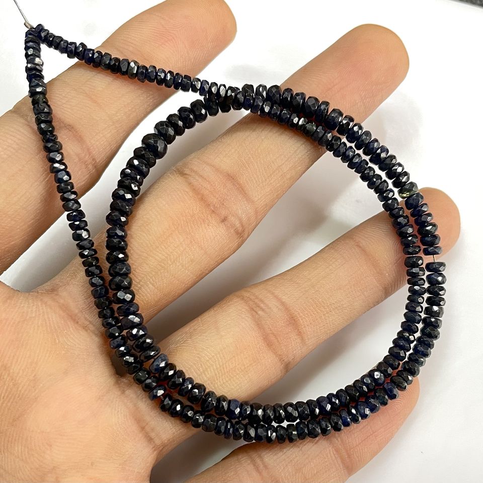Perles Rondelle à facettes en saphir bleu de qualité supérieure Pierre précieuse naturelle pour la fabrication de bijoux