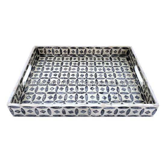Plateau d'incrustation en os de qualité supérieure | Plateau rectangulaire fait à la main avec motif géométrique pour la décoration intérieure moderne, les cadeaux et l'affichage