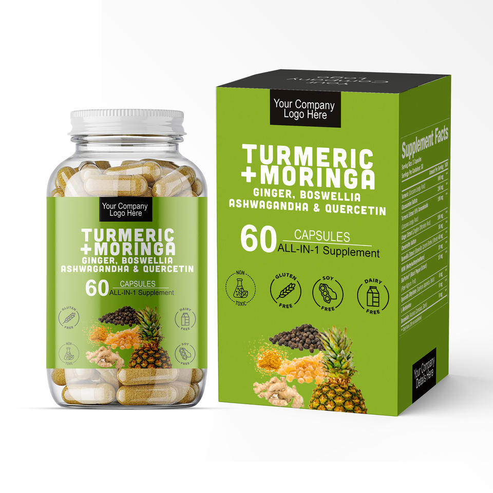 Supplément de qualité supérieure au curcuma curcumine moringa gingembre à base de plantes pour femmes et hommes capsules de quercétine cannelle de Ceylan