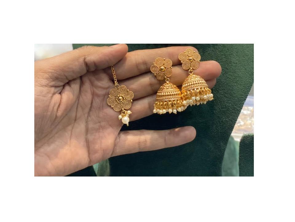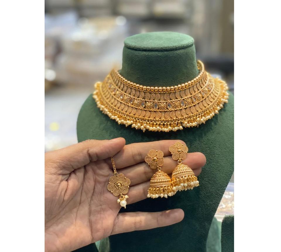 Ensemble collier et boucles d'oreilles plaqué or de qualité supérieure pour femme, style classique, aspect authentique, avec tikka, idéal pour fiançailles, mariage, cadeau, soirée ou festival