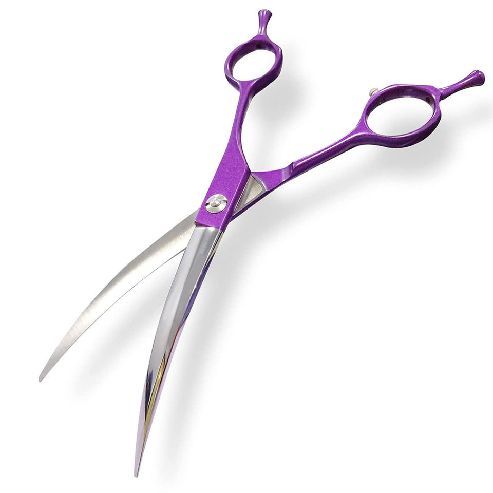Ciseaux courbes de luxe pour animaux de compagnie en acier inoxydable, prise en main confortable, toilettage sûr et facile pour les animaux (OEM disponible)
