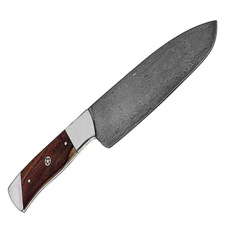 Couteau de chef de cuisine à lame fixe en acier au carbone damas fait à la main de qualité supérieure avec manche en bois et étui en cuir