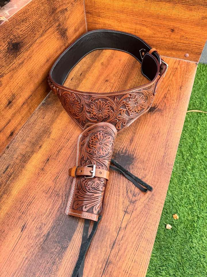 Étui de chasse Western Cowboy en cuir véritable fait à la main de qualité supérieure compatible avec bout ouvert une plate-forme avec ceintures réglables