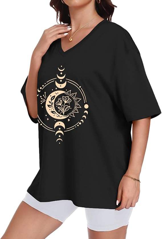 T-shirts oversize pour femmes, col en V, t-shirts graphiques d'été, hauts décontractés à manches courtes, fabrication OEM, vente directe d'usine