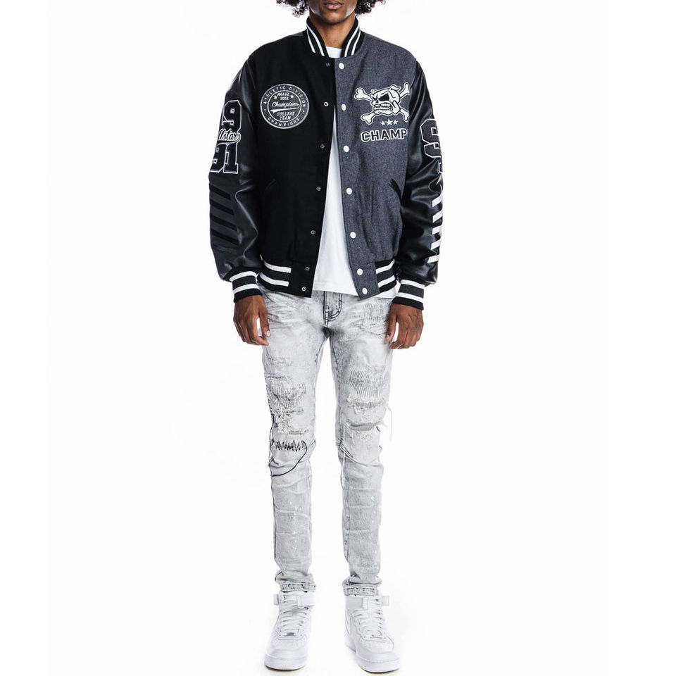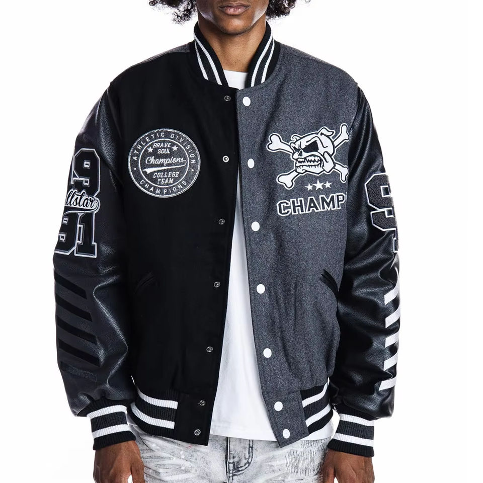 Vestes d'université à motif personnalisé de qualité supérieure avec broderie pour hommes Vestes d'université pour hommes avec 2 poches latérales personnalisées