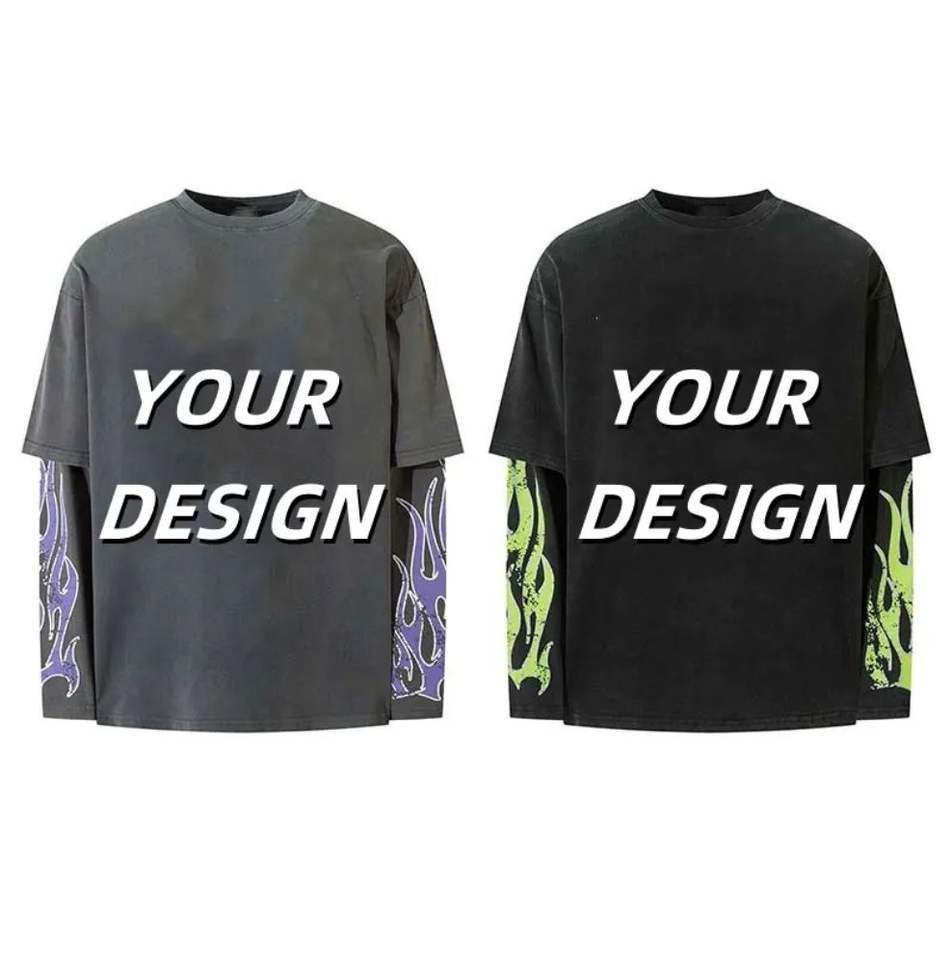 T-shirt à manches double couche imprimé personnalisé de qualité supérieure unisexe 2 en 1 à manches longues à double couche prix de gros