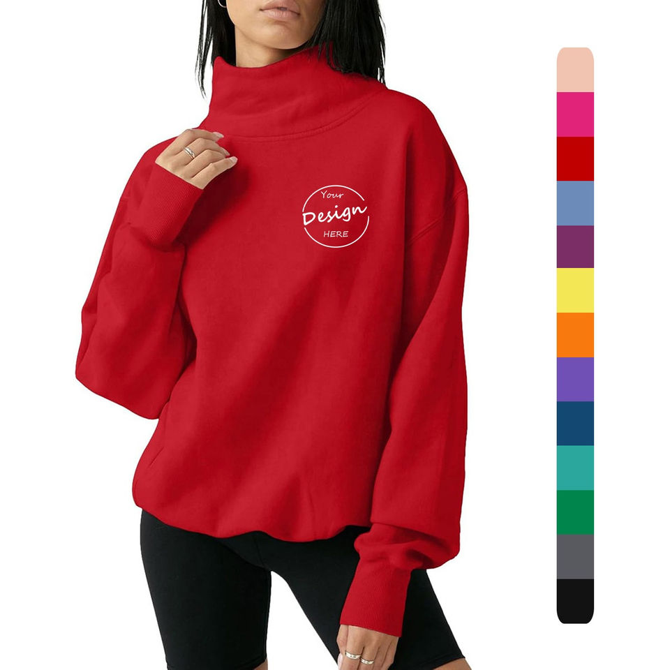 Sweat-shirt en molleton de coton doux à deux tons de qualité supérieure, personnalisé, pour femmes, col rond ample, épaules tombantes, sweat-shirts à capuche
