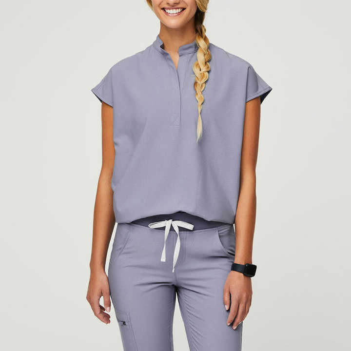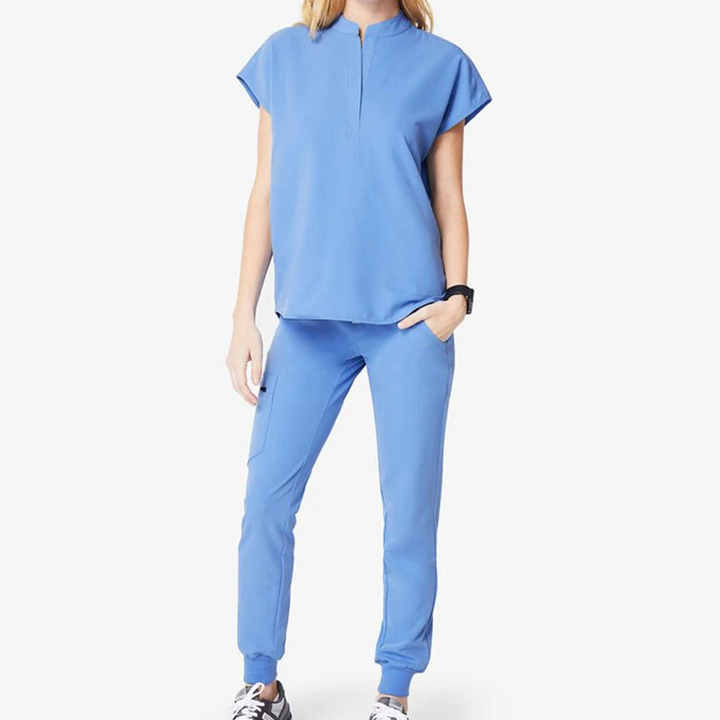 Premium Quality Custom Women's Nurse Scrub Uniforms Cotton Dobby Fabric Stretchy Comfortable Neck Needle Detection Jogger Style
