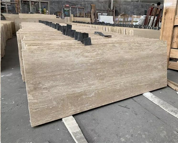 Dalles épaisses en travertin de qualité supérieure, tailles personnalisables, 3 cm d'épaisseur, coupe veinée, design moderne, garantie de plus de 5 ans pour salle de bain et cuisine