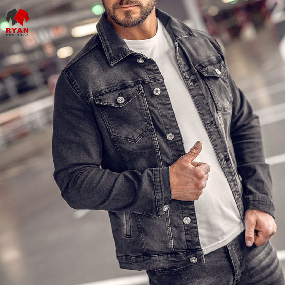 Veste en jean personnalisée de qualité supérieure pour homme, fermeture à boutons avec logo personnalisé, tenue décontractée